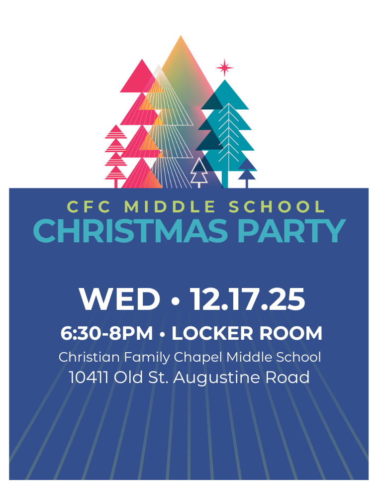Our desire in the Middle School Ministry at CFC is to grow fully devoted, spirit empowered Christ following students. We meet in the Locker Room (Middle School Room) for bible study, games, crazy fun, and more games!